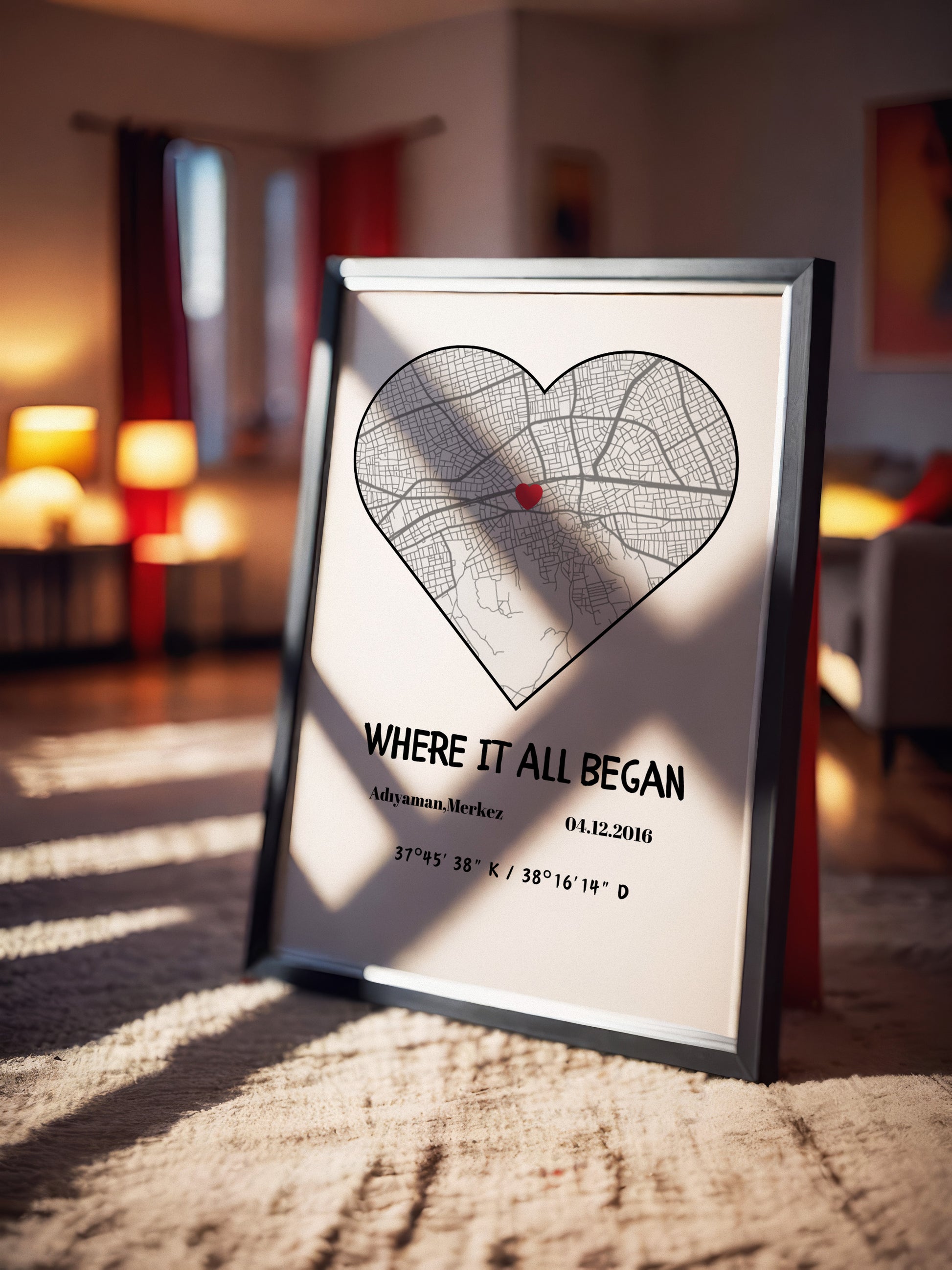 Kişiye Özel Kalpli Her Şeyin Başladığı Yer - Harita Tablosu